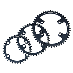 フロントシングル用のワイドナローチェーンリングが新登場。シマノ4アームクランク用で、シマノ製12速および11速に対応しています。